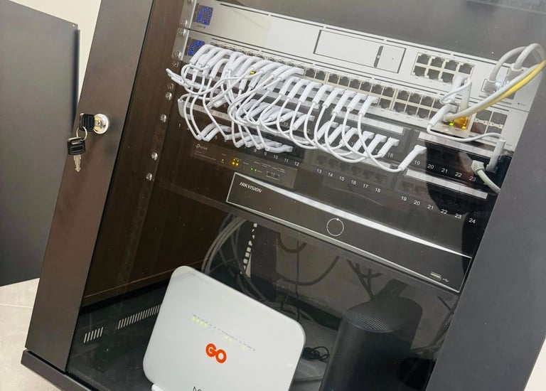 Complete network setup including cabling, cabinets, Wi-Fi, and dual WAN for reliable, high-performance connectivity.